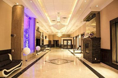 The Hanlon Convention Centre is Guelph’s premier event facility, offering over 12,000 square feet of modern venue space. Our 3 beautiful salons each offer dark oak beverage bars as well as a state of the art lighting and sound system, accommodating groups of 50-1000. Our 1500 sq. ft. front foyer is furnished with leather couches, gorgeous chandeliers, piped in music, a fireplace and waterfall. The perfect setting for weddings, corporate parties, proms, business meetings and trade exhibitions.