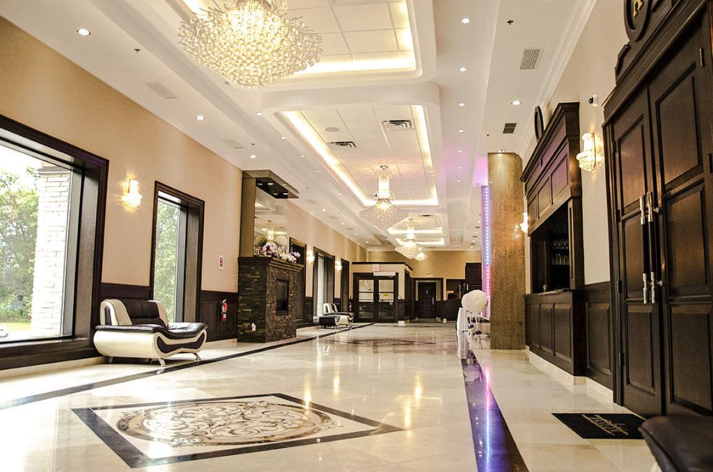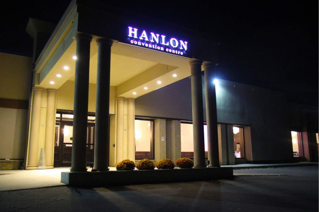 The Hanlon Convention Centre is Guelph’s premier event facility, offering over 12,000 square feet of modern venue space. Our 3 beautiful salons each offer dark oak beverage bars as well as a state of the art lighting and sound system, accommodating groups of 50-1000. Our 1500 sq. ft. front foyer is furnished with leather couches, gorgeous chandeliers, piped in music, a fireplace and waterfall. The perfect setting for weddings, corporate parties, proms, business meetings and trade exhibitions.